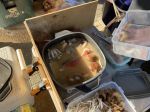 焼き物を食いながら、鍋の方も同時進行しようという事になり、なんとなくキッチンドランカーの気分。こういうのも楽しい。はじめに入れたコンソメが効いたのか、その後の食材からの出汁のせいなのか、美味いのなんの南野陽子だった。