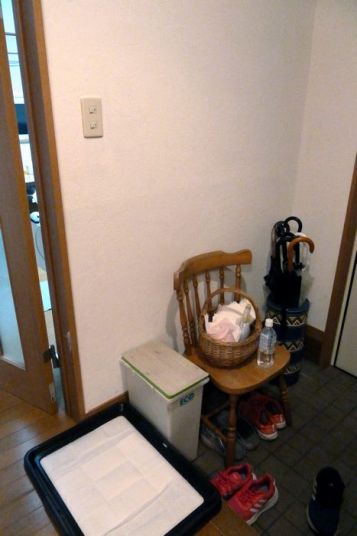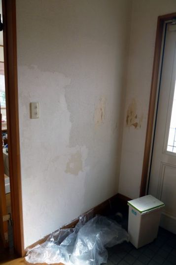 大事なお客さんが来るので、玄関周りの壁を塗ってみることにした。なんせ最大時には猫4匹、犬2匹がいたのだ。猫は壁で爪研ぎをするし、犬はいつも腹が減っているので壁紙を剥がして食ってしまうのだ。糊が美味そうな匂いがするのだろうか?